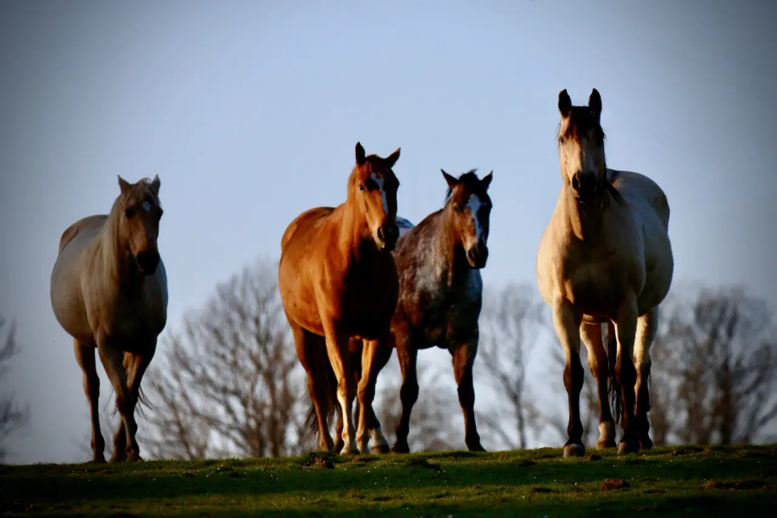 Open Range has sufficient space for the horses to live in herds on grassy pastures all the time, supplemented by hay harvested at will and made on the property to ensure the quality.